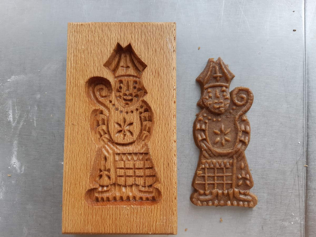 Magnifique forme de St Nicolas moulé dans un authentique moule en bois.